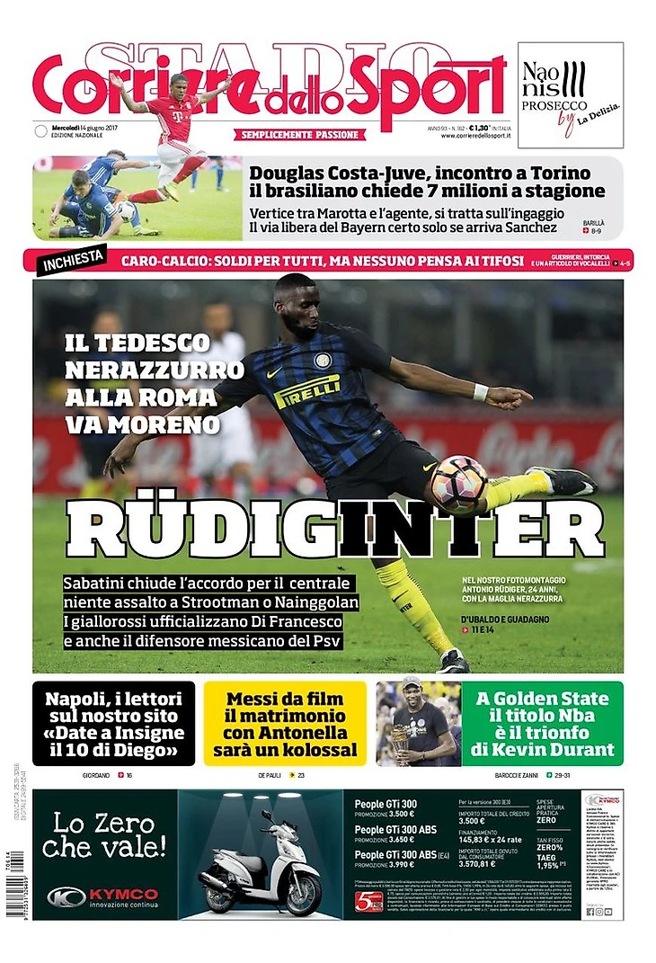 «РюдигИнтер». Заголовки Gazzetta, TuttoSport и Corriere за 14 июня