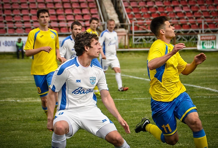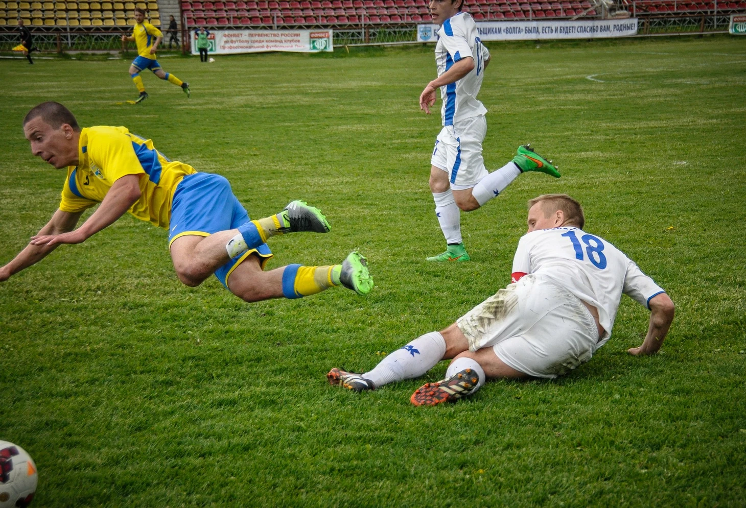 Первый тайм не порадовал голами, зато во втором было забито аж 5. Сначала дубль оформил нападающий «Волги» Михаил Пенчук (на фото слева), причем он сделал это за 6 минут.