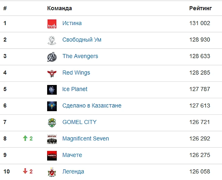 Существуют несколько рейтингов, давайте посмотрим на каких местах расположилась наша команда.
