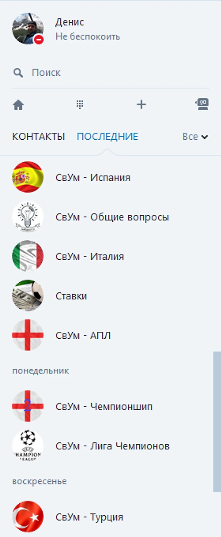 Для общения, обсуждения трансферов и других фэнтази дел мы используем Скайп. Само общение проходит в режиме текстовых чатов. Для каждого турнира создан отдельный чат, что я считаю довольно удобно, т.к. нужные сообщения не потеряются в потоке инфы.