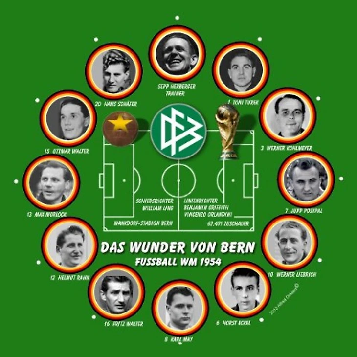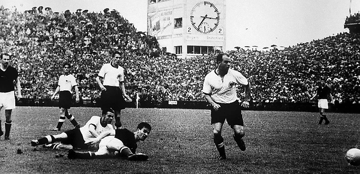 В 1954 году Венгрия являлась главным фаворитом чемпионата мира. Финал, удививший своим 3:2 в пользу немецкой команды под предводительством капитана Фрица Вальтера и тренера сборной Зеппа Хербергера, проходил на легендарном и в настоящее время, к сожалению, снесенном Бернском стадионе «Ванкдорф» с 60.000 зрителями. После этого финала игроки немецкой сборной стали известными в качестве «героев Берна» и упоминаются в каждом немецком учебнике по истории. Неофициально выигрыш титула чемпиона отмечается как рождение Федеративной Республики Германии.