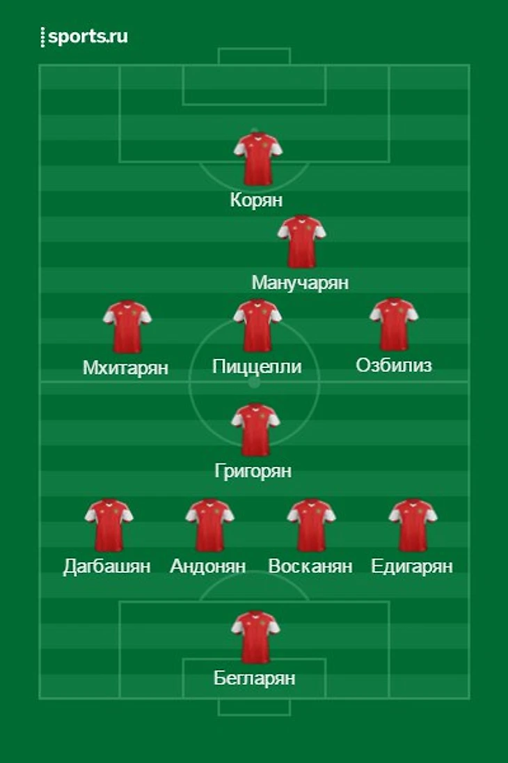 Данный тактический рисунок игры объясняется большим креативом в центре поля, где, конечно же, главная опасность будет исходить от Генриха Мхитаряна. Для него этот матч станет знаковым, именно в таких матчах надо тащить свою сборную вперед и показывать лидерские качества. В центре поля позиция опорника за Артуром Григоряном, если этот парень в форме и в настроении, то он способен на многое, как выжигать центр поля, так и самолично вскрывать оборону соперника своими сольными проходами. Если черногорцы забыли его молниеносный слалом, после которого сборная Армения почувствовала кровь, то в матче с Сент Китис и Невис Григорян помахал черногорцам, дескать это было не случайностью, я так часто делаю.
