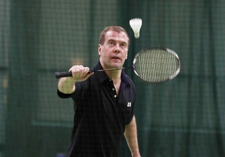 На правом фланге, укутавшись в одеялко, уютно расположился Дмитрий "Димон, iPhone, компот" Медведев
