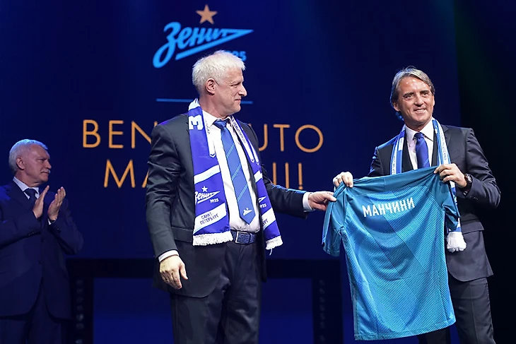 – Синьор Манчини, вы достигли хороших результатов в Англии, Турции, Италии. Но реально значимых и больших побед вы можете достигнуть в самой большой стране мира – в России! Вы можете стать чемпионом на одной шестой части суши, стать чемпионом в 11 часовых поясах одновременно. Думаю, для вас это серьезный вызов. Хочу пожелать вам удачи. «Зенит» – чемпион!