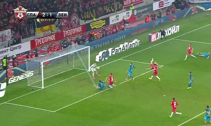Ещё раз о неприятных для «Спартака» цифрах: по разным подсчётам, красно-белые допустили у своих ворот от 29 до 32 явных голевых моментов. То есть, в терминологии Opta, ситуаций, максимально близким к голу (пенальти, удар по пустым воротам, удар из вратарской, выход один на один). Красно-белые допустили у своих ворот больше таких ситуаций, чем любой другой топ-клуб, и примерно столько же, сколько «Анжи». Чтобы вы понимали, какой момент понимается под явным – вот, из матча с «Зенитом».
