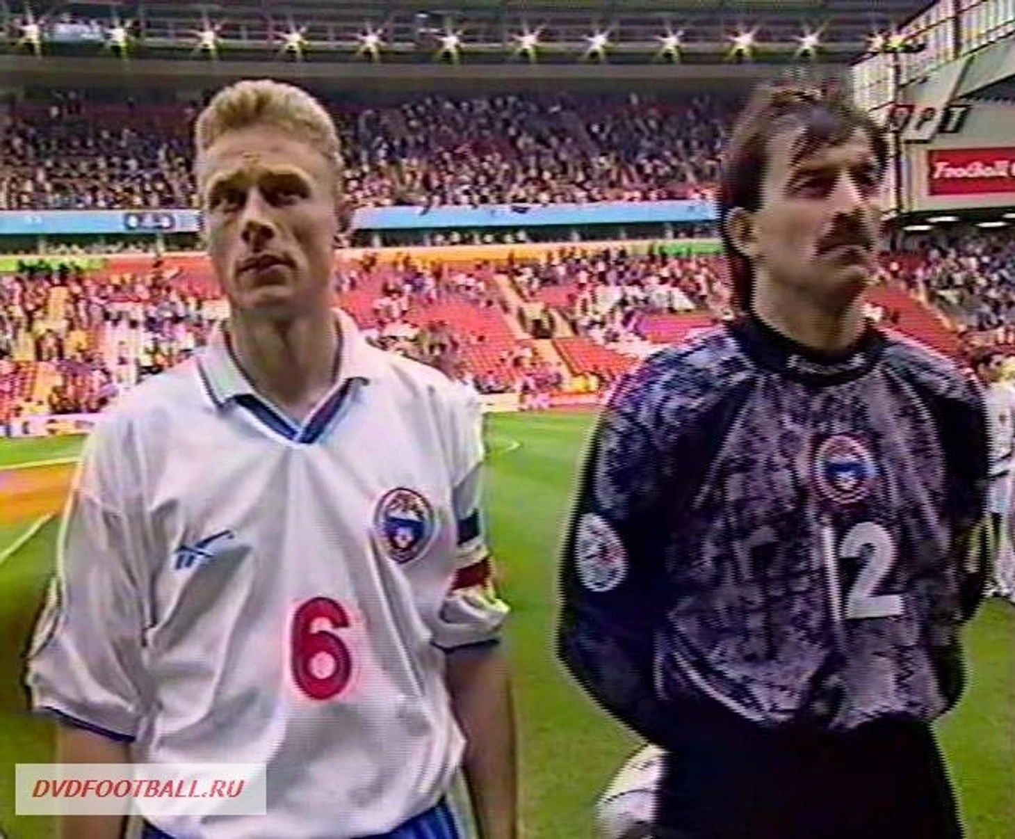 ЧЕ-96. Россия-Чехия (3:3). Показав в матче против будущихВице-Чемпионов Европы очень неплохую по содержанию игру, наша сборнаявсё же выйти из группы не смогла. В.Карпин и С.Черчесов - конечно этитогдашние Звёзды Российского (и Европейского!) Футбола могли расчитывать в1996 на куда большую благосклонность Футбольной Фортуны!..