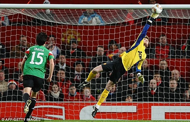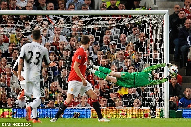 Сейв в матче против "Ливерпуля в сезоне 2011/12. Та встреча завершилась победой "красных ьяволов"