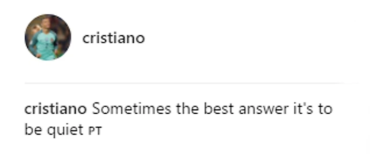Нападающий «Реала» Криштиану Роналду прозрачно намекнул в своем инстаграме, как надо реагировать на распространяющийся ажиотаж вокруг слухов о якобы его уходе из клуба.