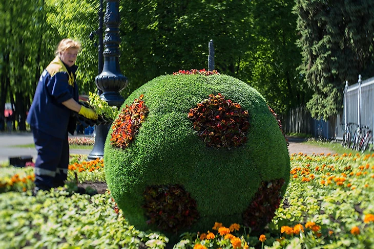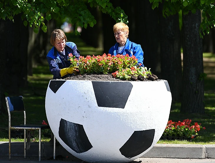 Футбольная клумба перед стадионом.