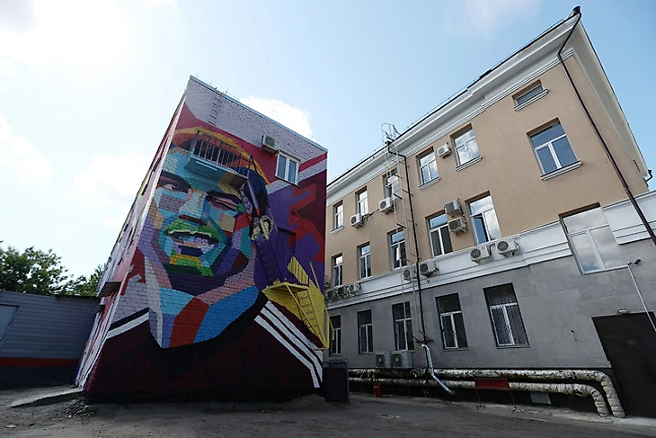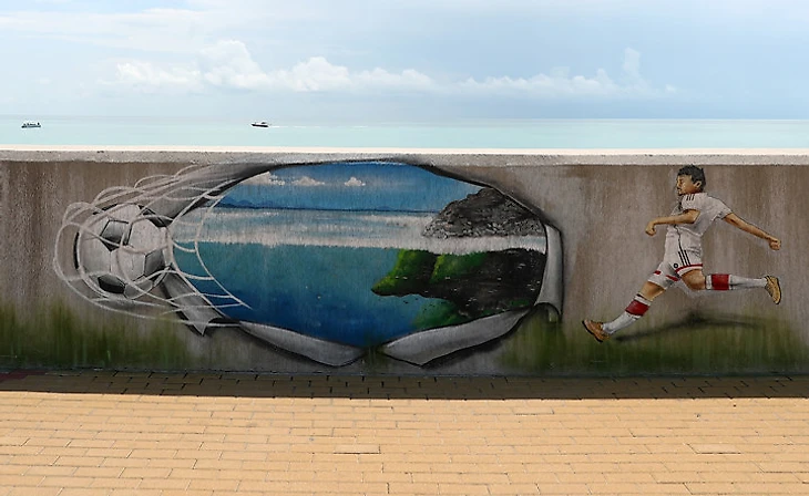 Настенная живопись «Русской ривьеры» теперь тоже про футбол.