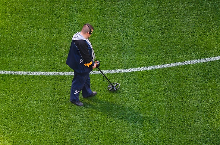 Стюард с металлодетектором.