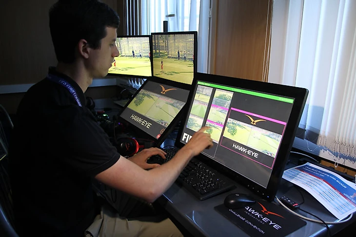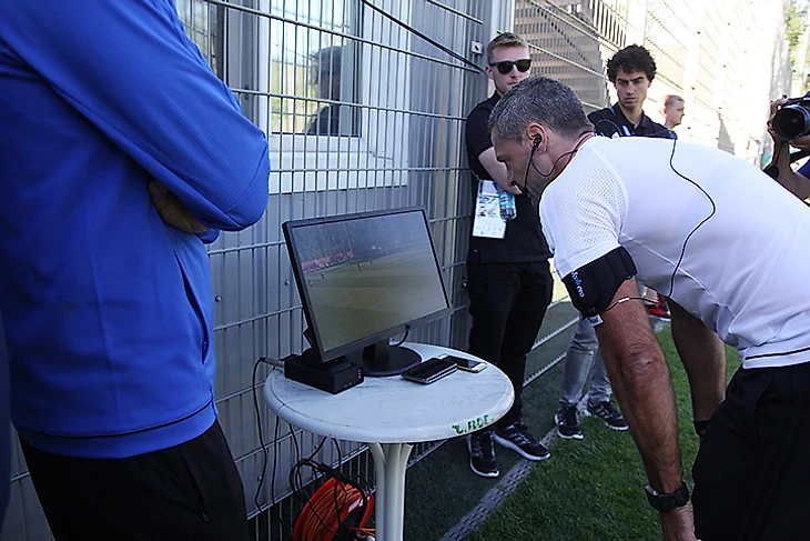 Дамир Скомина тестирует систему видеоповторов.
