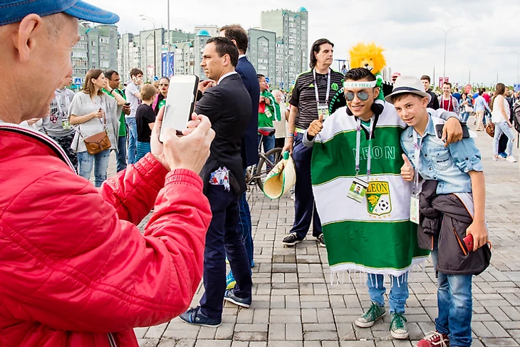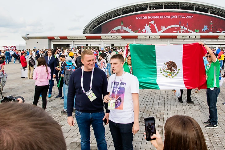 Перед стадионом в это время куда многолюднее, чем на трибунах. Для мексиканцев Казань стала почти родной: они провели здесь два групповых матча из трех, разузнали все самые вкусные места с татарской кухней и обжили местный стадион. На трибуны они не торопились, поэтому за полчаса до игры объявление состава их сборной встретили довольно вяло.