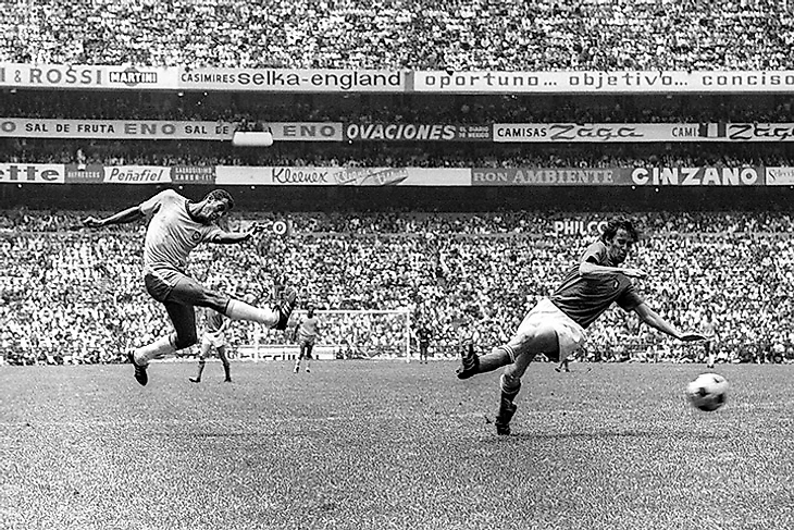 Впервые большой футбол занесло за пределы Европы и Южной Америки – в Мексику. Сборная СССР, в которой царил Анатолий Бышовец, легко вышла из группы, но в 1/4 уступила Уругваю (0:1), когда голландские судьи прозевали выход мяча за лицевую. В полуфинале итальянцы выиграли у ФРГ так называемый «Матч века», но в финале угодили под, возможно, лучшую сборную Бразилии в истории. Пеле стал трехкратным чемпионом мира. Наверное, это вечный рекорд.