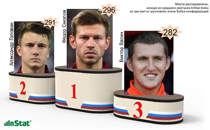 По данным компании InStat лучшими игроками сборной России на турнире стали Фёдор Смолов, Александр Головин и Виктор Васин: