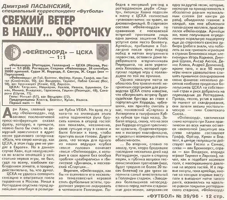 Отчет о выезде армейских фанатов в Роттердам на матч Фейеноорд-ЦСКА в 1996 году