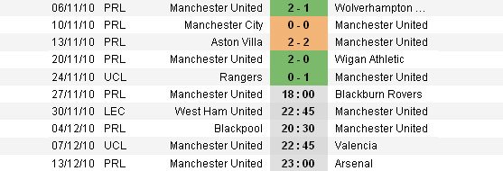 Что касается конкретно формы команды, то манкунианцы почти набрали оптимальные кондиции (что часто бывает ближе к рождеству). Команда не проигрывает уже 28 матчей подряд во всех соревнованиях (!!!), и соответственно пока остаётся непобеждённой и в чемпионате. Расстраивают лишь периодические ничейные результаты, но наверняка и они пройдут в скором времени. Ситуация с травмированными поправляется. Сейчас в лазарете находятся лишь Даррен Флетчер, Оуэн Харгривз, Майкл Оуэн и Антонио Валенсия. Все, за исключением Антонио, должны восстановится, как обещают, к 13 декабря, так что ждём