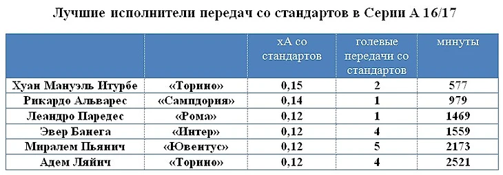 Одна голевая передача – совсем не выдающийся показатель, однако это скорее стечение обстоятельств, чем вина новичка «Зенита». По качеству исполнения стандартов в прошедшем сезоне серии А Паредес вошел в топ-6.