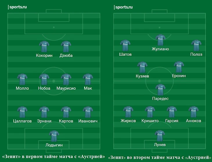 После перерыва Карпова и Эрнани сменили Гарсия и Кришито, но у них работы почти не было – во втором тайме петербуржцы закрыли «Аустрию» на ее половине поля, и мяч до штрафной «Зенита» практически не доходил.
