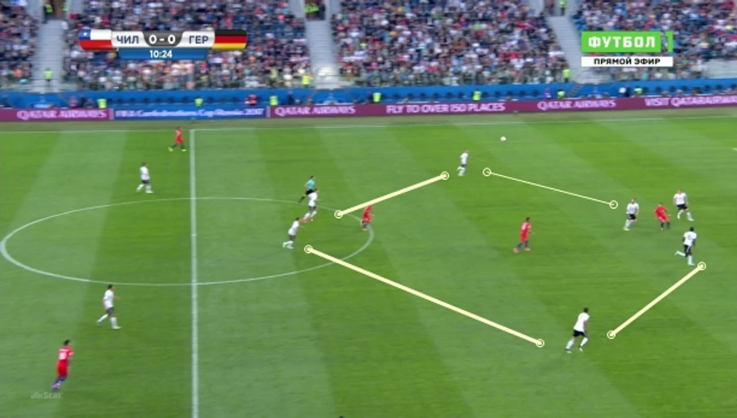 Академичность немцев особенно явно проглядывалась в транзитных ситуациях. Чилийцы вылетали в атаку гораздо быстрее, нежели «маншфат» сжимались по вертикали. Из-за отсутствия компактности южноамериканская сборная получала гектары пространства в зонах между линиями.