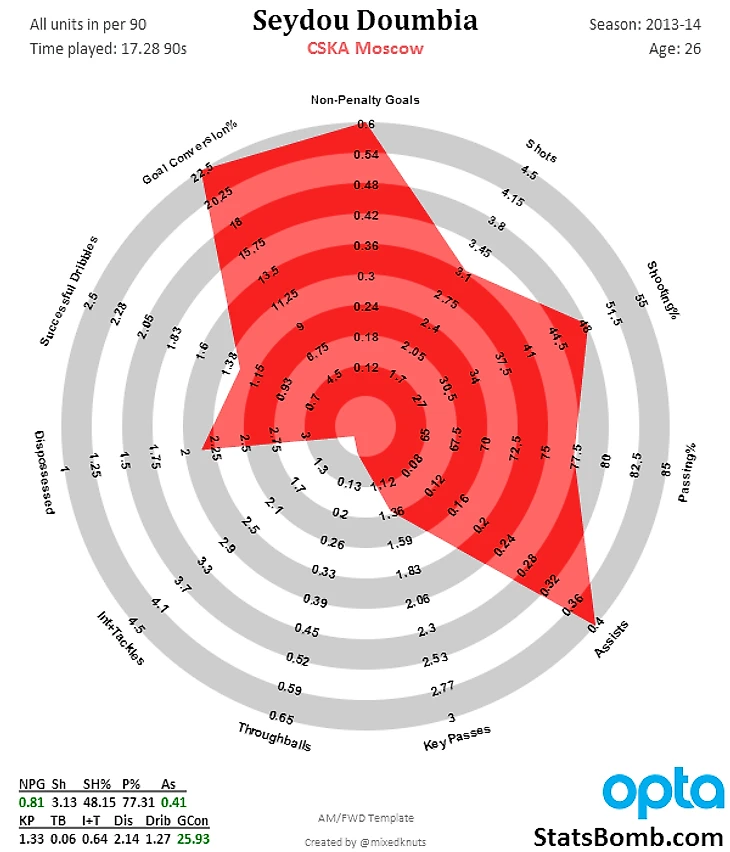 Радарный график Сейду Думбия, сезон 2013/14, от @mixedknuts