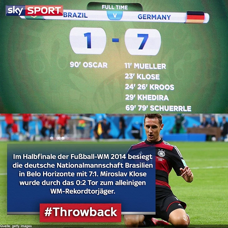 В этот день, в 2014 году, в Белу-Оризонти «орлы» одолели «избранных» в полуфинале чемпионата мира со счётом 7:1, забив на 23 минуте Мирослав Клозе стал единоличным лучшим бомбардиром за всю историю ЧМ.