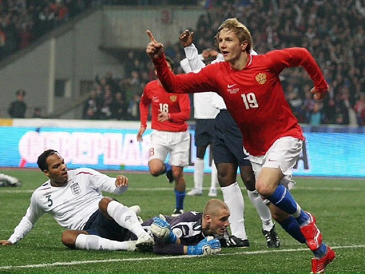 Ажиотаж вокруг того поединка был просто неимоверным. Лужники были заполнены до отказа. Зрители неистово гнали вперёд свою команду. До поры до времени это абсолютно не помогало. Англичане полностью оправдывали статус фаворита. А гол Руни на 29-й минуте выглядел закономерным. Но во втором тайме всё перевернулось с ног на голову. Гус Хиддинк нашёл нужные слова для своих подопечных в перерыве. И на второй игровой отрезок вышла другая мотивированная и злая команда, готовая растерзать любого соперника. И англичане не выдержали. Вышедший на замену «спящий гигант» Роман Павлюченко дважды огорчил вратаря англичан Пола Робинсона. Вначале он реализовал пенальти, назначенный за фол Уэйна Руни против Константина Зырянова, а затем, он же чётко сыграл на добивании после мощнейшего удара Алексея Березуцкого. Этот гол оказался победным. Россияне завоевали важнейшие три очка, опередив родоначальников футбола. Это был один из лучших матчей сборной России за всю её историю.