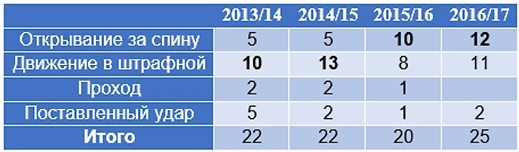 Но за прогрессом Алекса не только упорство, но и интеллект. Хороший пример – 3-4 бонусных гола, которые он забивает после стандартов. Француз не исполняет их напрямую – почти все эти голы добыты благодаря умному движению в штрафной при угловых. Добиться этого без прямой работы над таким движением невозможно. В первом полноценном сезоне в качестве форварда Ляказетт не забил ни одного такого – потом резко прибавил и держит уровень. По похожей формуле он прибавил в открываниях за спину защитникам: