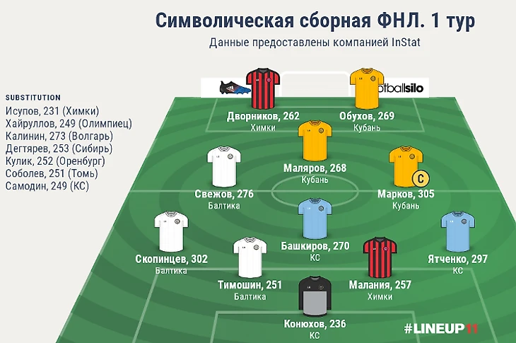 Отметим также, что лучшим клубом 1 тура ФНЛ стали "Крылья Советов" с общекомандным рейтингом InStat Index, равным 244 баллам. Ну а с наихудшей стороны проявили себя футболисты курского "Авангарда", набрав лишь 178 баллов.