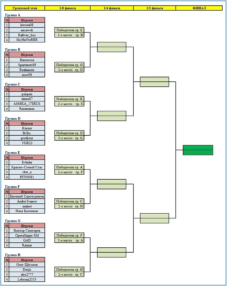 Fantasy H2H турниры. Список участников индивидуального турнира РФПЛ (групповой + плей-офф)