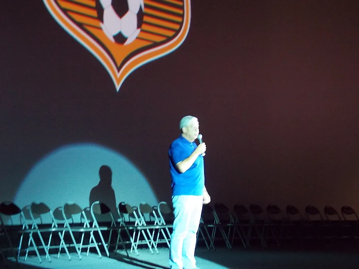 Президент клуба Григорий Иванов извинился за свое вынужденное отсутствие. От лица руководства с приветственными речами пришлось выступать его заму Александру Юрьевичу Левину. А затем вместе со спортивным директором Евгением Алхимовым (кто не в курсе - обладателем действующего рекорда по забитым голам в Первой лиге и лучшим бомбардиром "Урала" в сезоне-2006) они начали собственно презентацию игроков.