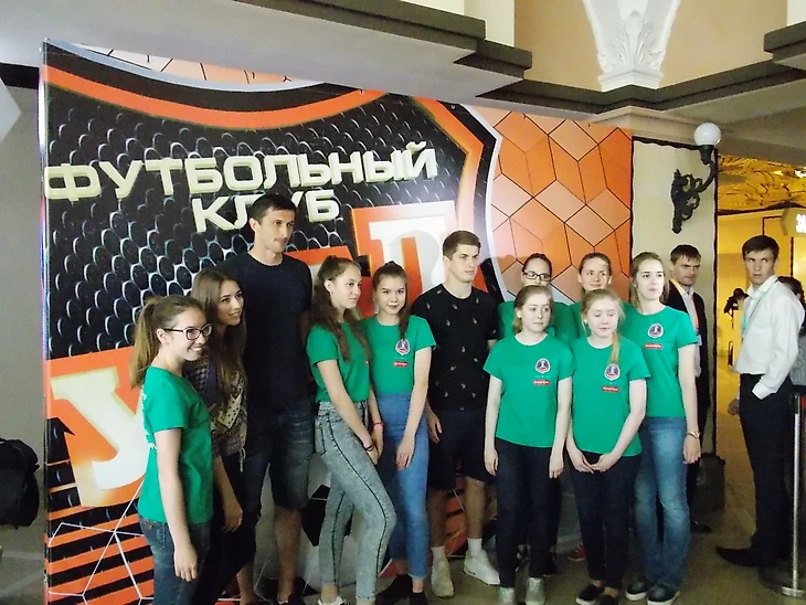 Первыми возможность сделать фото с новичками клуба получили волонтеры. Бавин, Годзюр, Евсеев, Портнягин и Ароян задержались, чтобы дать возможность покрасоваться рядом с собой любому желающему.