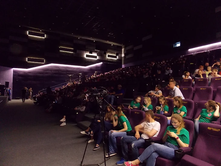 Последним на сцену поднялся Александр Тарханов. После того, как всем досталась своя порция апплодисментов, команда разместилась на стульях вдоль сцены и приготовились отвечать на вопросы.