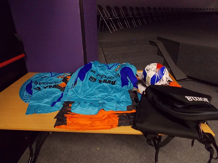 Перед началом мероприятия состоялся тематический квест. Желающим было предложено пройти ряд испытаний, поисковых задачек и прочей занимательной суеты. Победителей ожидали призы. Главный - мяч с автографами игроков команды. Вот он, среди заботливо приготовленной игровой формы футболистов.