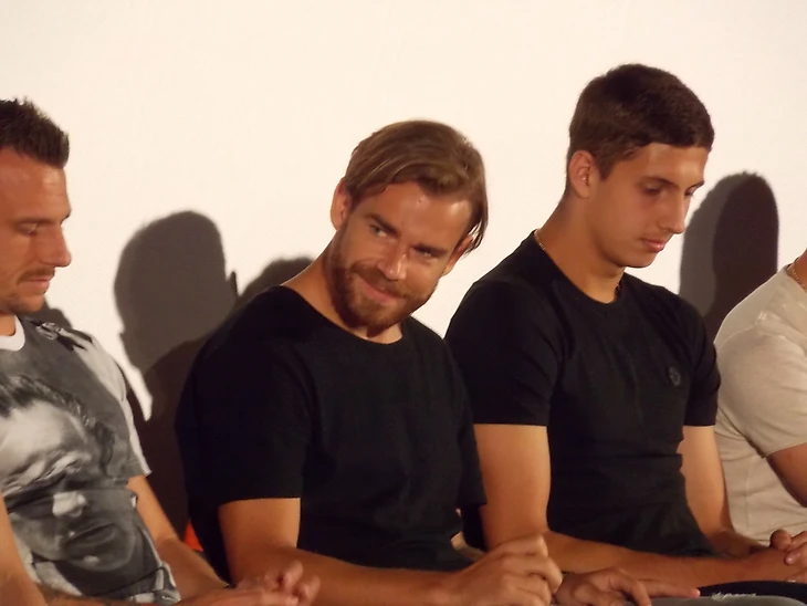На сцену по очереди пригласили всех игроков основного состава, начиная от Андрея Тимофеева и заканчивая пришедшими летом новичками. Выход в свет прожекторов сопровождался речью ведущего, выделявшего особенности того или иного "презентуемого". Было занятно узнать, например, что Эрик Бикфалви теперь "Уральский танк". На экране в это время транслировались стилизованные постеры, звучала бодрящая музыка. Впечатляло.