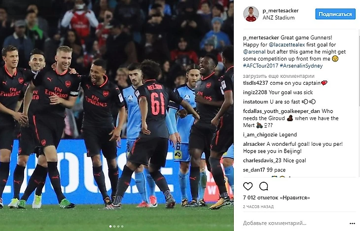 Пер Мертезакер: «Прекрасная игра, канониры! Рад за первый гол Александра Ляказетта за «Арсенал», а после этого матча у него была возможность поучаствовать в своеобразном соревновании центрального защитника от меня».