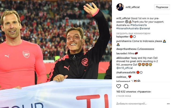 Месут Озил: «Отличная первая победа в нашей предсезонке. Спасибо за твою поддержку, Австралия».