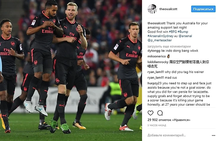 Тео Уолкотт: «Спасибо тебе, Австралия, за потрясающую поддержку прошлым вечером. Отличная первая победа».