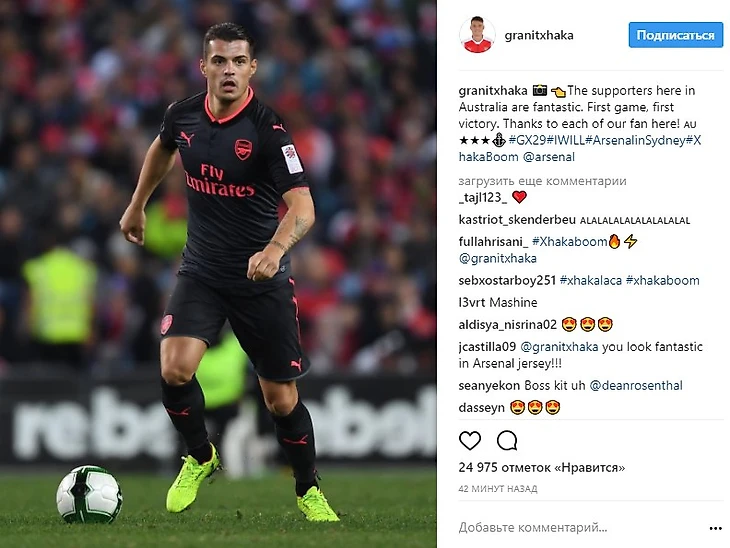 Гранит Джака: «Здесь, в Австралии фантастические болельщики. Первый матч, первая победа. Спасибо каждому из наших фанатов в этом месте!»