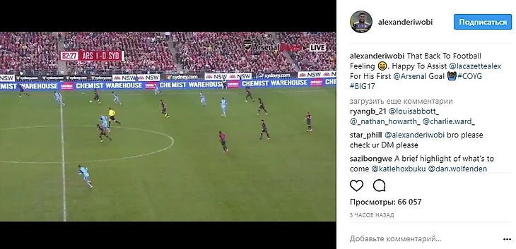 Алекс Ивоби: «Это чувство возвращения к футболу. Рад ассистировать Александру Ляказетту в его дебютном голе за «Арсенал»».