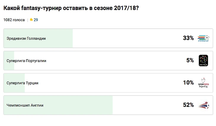 Результаты голосования «Какой fantasy-турнир оставить в сезоне 2017/18?»