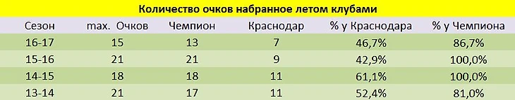 Опыт прошлых сезонов показывает, что важнейшим условием для достижения высоких результатов в таблице внутреннего первенства является мощный старт. Все последние чемпионы «Спартак», «ЦСКА» и «Зенит» начинали крушить соперников ещё летом.