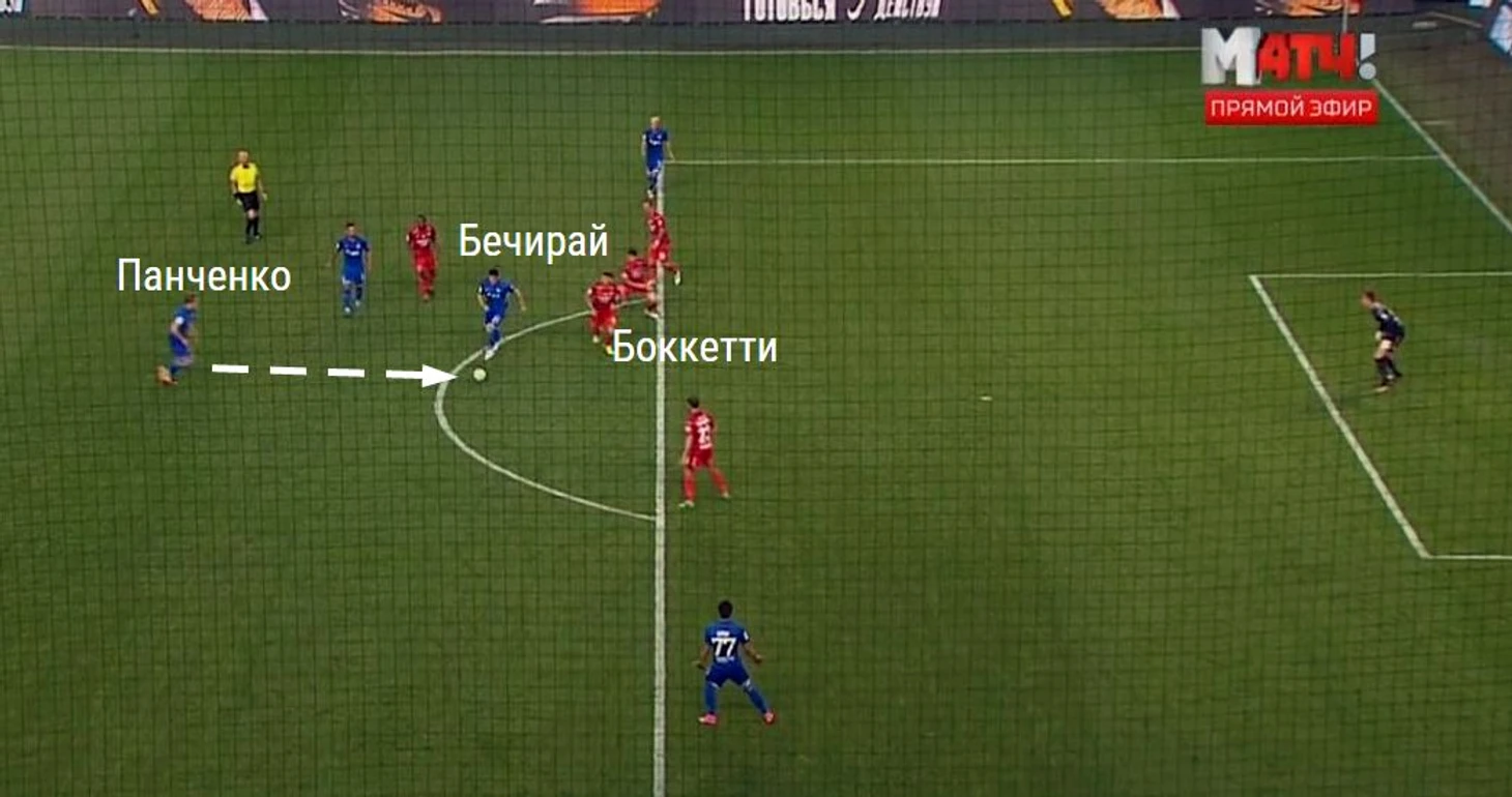 В "Динамо" проблему старались решать не только смещениями Панченко, но и длинными забросами. Примерно та же стратегия наблюдалась в матче за Суперкубок, но "Локомотиву" успехов она не принесла, однако в составе чемпиона на сей раз не было Джикия, и это могло сыграть свою роль.