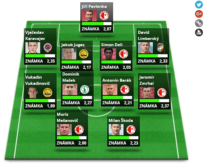 Вукадинович в сборной чемпионата Чехии с лучшей оценкой по итогам полугодия