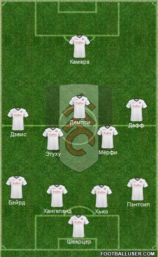 "Фулхэм": Шварцер - Пэнтсил, Хьюз, Хангеланд, Бэйрд - Дафф, Этуху, Мёрфи, Демпси, Дэвис - Камара.