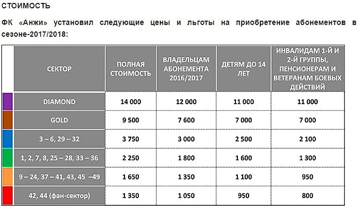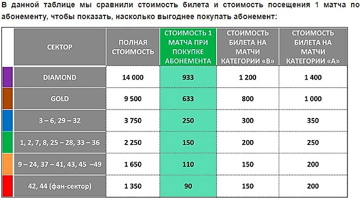 Отдельно хотелось бы отметить «Анжи», которые наглядно и подробно объяснили, почему выгоднее купить абонемент, чем постоянно покупать билеты на «Анжи Арену».