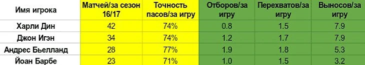 Центральные защитники вновь будут конкурировать, это единственная позиция, куда приобретения и вовсе не нужны были. Капитан команды Харли Дин, универсал Андрес Бьелланд, Джон Игэн и Йоан Барбе, а также выступающий за молодежку Мэнни Онарайс - Дин Смит имеет прекрасный выбор кого ставить в центр обороны.