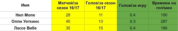 Игроки атаки в большинстве своём очень техничные игроки, поэтому для такой схемы игры нужен форвард, который будет мобилен и универсален. Под такую роль подходит Олли Уоткинс. Вибе, скорее всего, не будет играть в центре, а чаще будет находиться на правом фланге и конкурировать там с Пелетейро. Нил Мопе менее маневрен и это может сказаться на развитии атак, поэтому в этом случае здесь глаз лежит на Уоткинсе, который, к слову, может изначально играть и на левом, и на правом фланге.