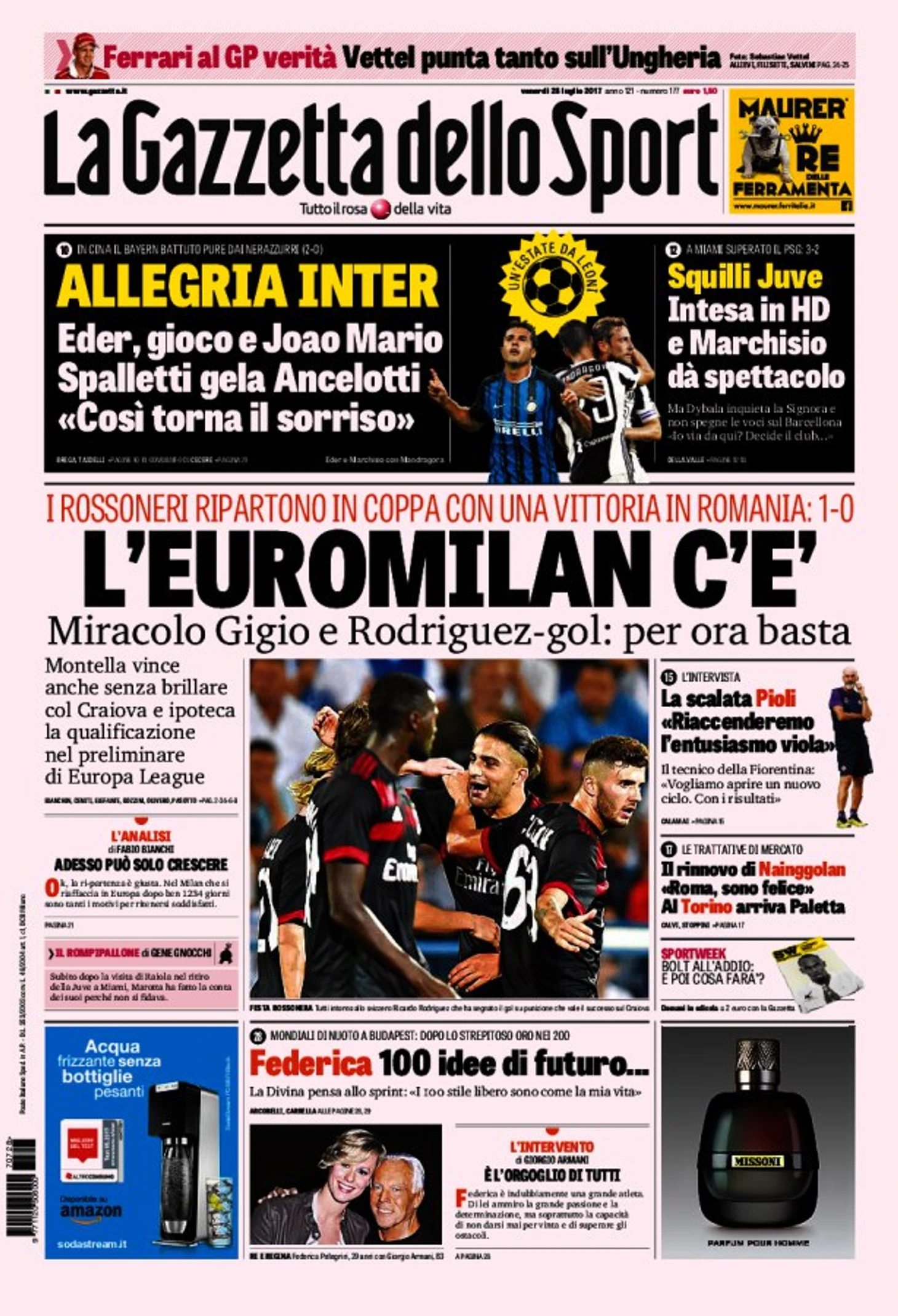 ЕвроМилан существует. Заголовки Gazzetta, TuttoSport и Corriere за 28 июля