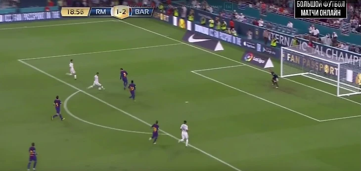 Карим снижает скорость, сближаясь с Пике. Все еще остается очень перспективный вариант с Асенсио на левом фланге и последующий прострел на Каземиро. Или удар по воротам с отличной позиции. В такой ситуации Карим решает пробить. Разумеется, удар прошел мимо. Из-за таких вот ситуаций "Реал" не выравнивает игру в свою пользу. Моменты есть, вот только их нужно реализовывать и забивать. А не творить то, что сделал Бензема.